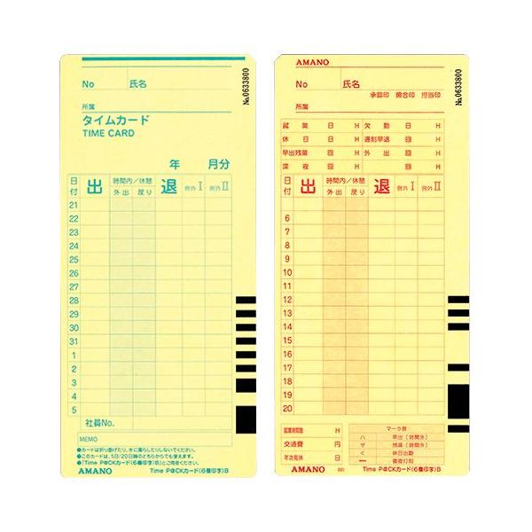 アマノ(amano) TimeP@CKカード(6欄印字)B 20日/5日締め用 100枚入 [旧品名:ProP@CKカードB]