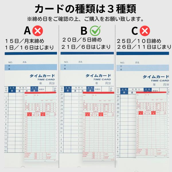 アマノ タイムカード B 5日・20日締め Bカード 汎用品 互換品 100枚入り 対応機種 : アマノタイムレコーダー AX BX BC CRX DX EX RSシリーズ