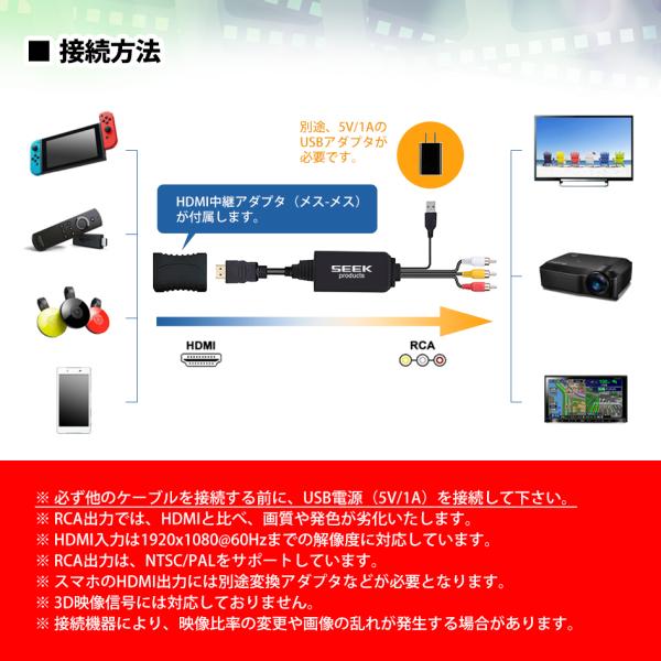 VISION 中継アダプもセットで HDMI RCA 変換ケーブル HDMI to RCA コンバーター コンポジット 変換 1080P デジタル HDMIからアナログに ナビ 車にも