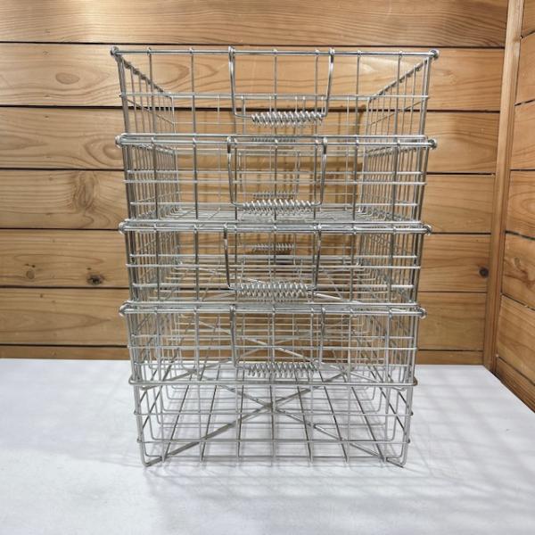 【中古】ステンレス 食器かご 給食かご 配膳かご ワイヤーバスケット 配膳用品 W380×D355×H200(mm) 4点セット《在庫数 5》