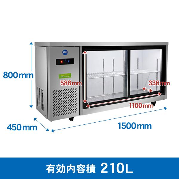 業務用 JCMS-1545T 横型冷蔵ショーケース ビールショーケース 省エネ冷蔵庫 LDE照明 スライド扉 210L ノンフロン 結露対策 1500×750×800mm【送料無料】