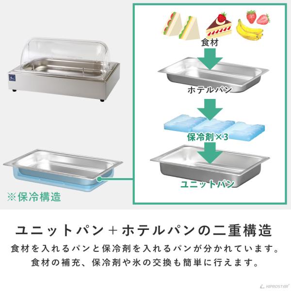 保冷チェーフィングディッシュ 選べるホテルパン 1/1 1/2 1/3 ディスプレイケース コールドチェーフィング ショーケース 保冷ディスプレイ ビュッフェ 卓上 小型
