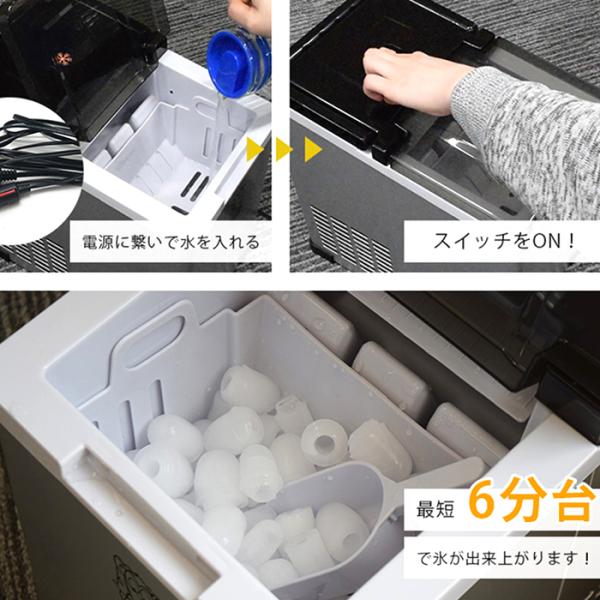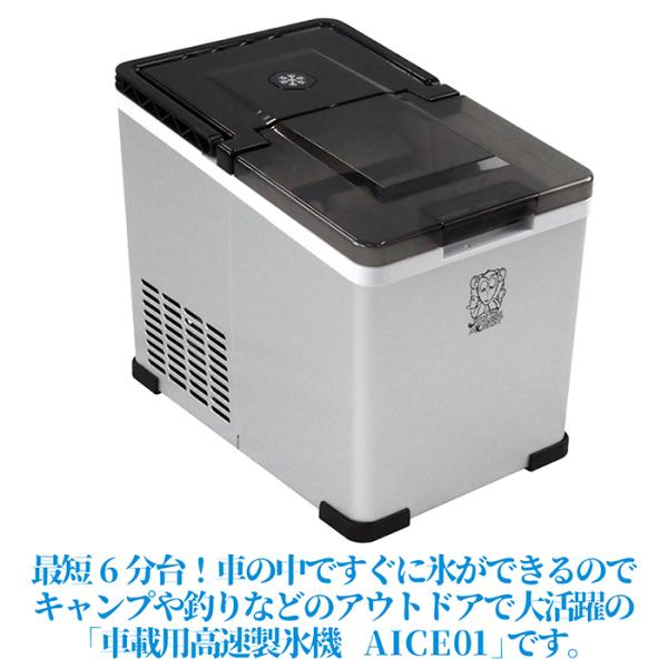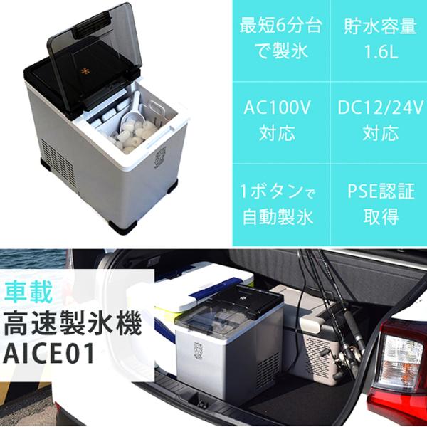 製氷機 車載用 高速製氷機 製氷時間6分 製氷量12kg 貯水容量1.6L 2電源対応 DC電源ケーブル付属キャンプ 釣り アウトドア 野外スポーツ AICE01