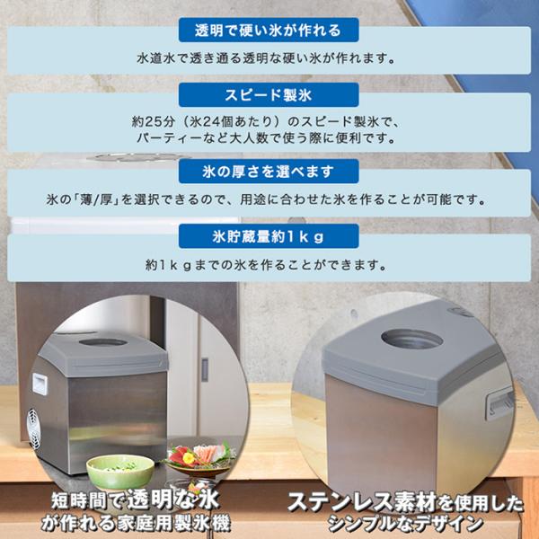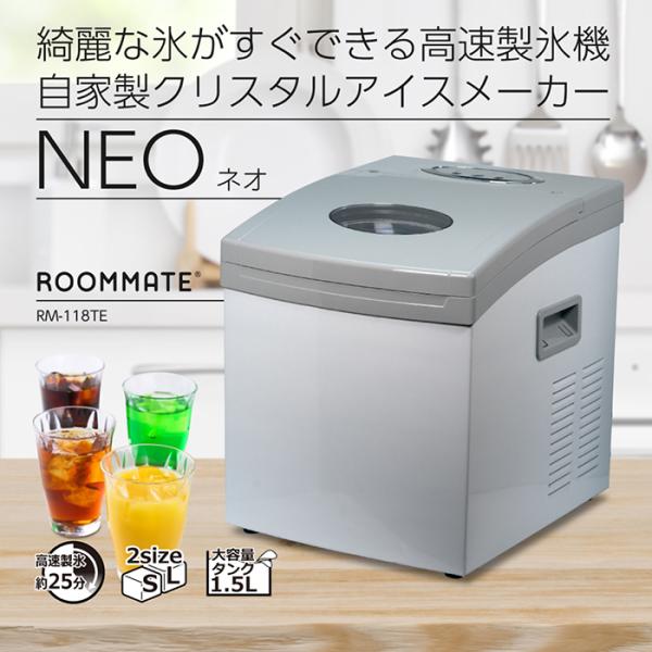 製氷機 クリスタルアイスメーカー クリスタルアイス 高速製氷 25分 氷貯蔵量1kg 大型水タンク1.5L 製氷サイズ2段階切替 家飲み RM-118TE