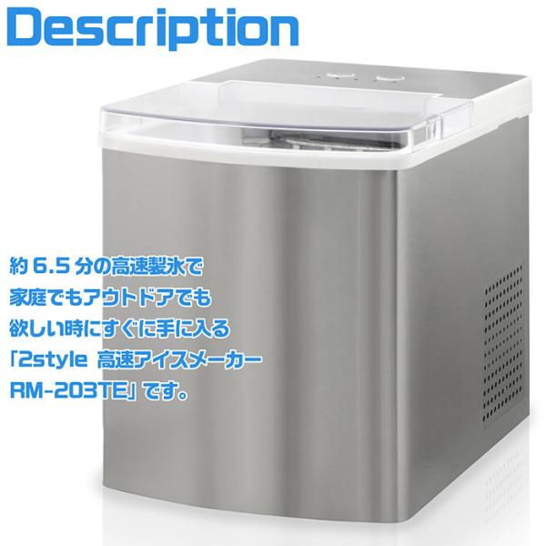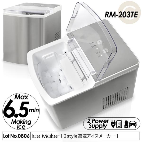 製氷機 アイスメーカー 超高速製氷 6.5分 2電源方式 カーアダプター付属 水タンク容量 約2L 製氷サイズ2段階 家飲み キャンプ アウトドア RM-203TE