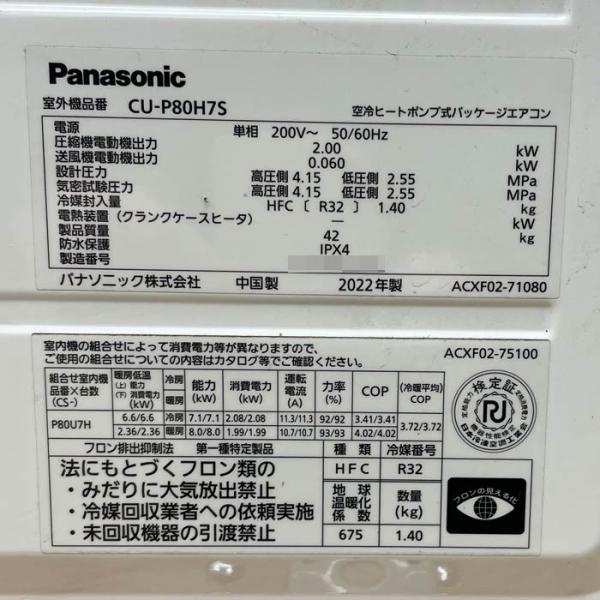 【送料無料】天カセエアコン 3馬力 業務用 外機CU-P80H7S 内機CS-P80U7H パナソニック 2022年 4方向 天井カセット形 中古 【見学 千葉】【動産王】