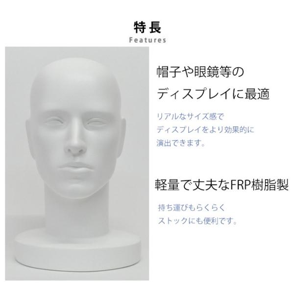 マネキンヘッド メンズ FRP樹脂製 ホワイト シンプルな耳 スキンヘッド HD-18
