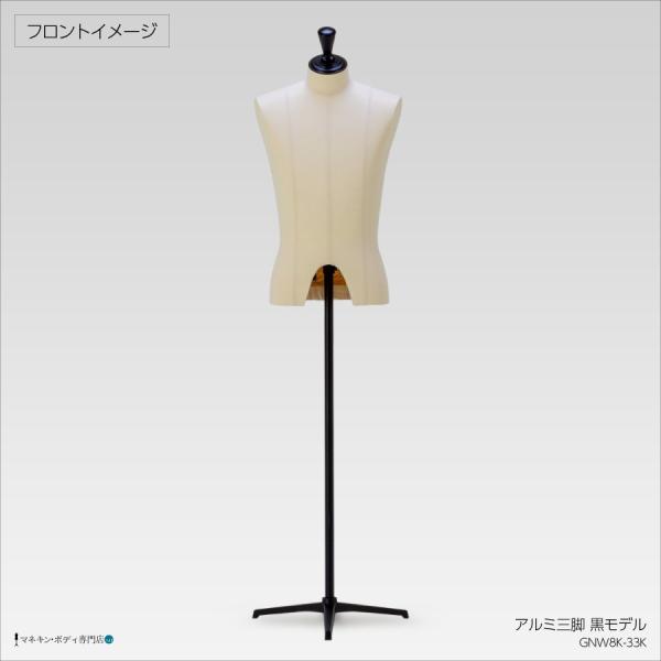 クラシックボディ キャンバス張マネキン 上半身トルソー アルミ三脚 黒半艶 メンズ ピンワーク可 腕なし 股なし GNW8K-33K