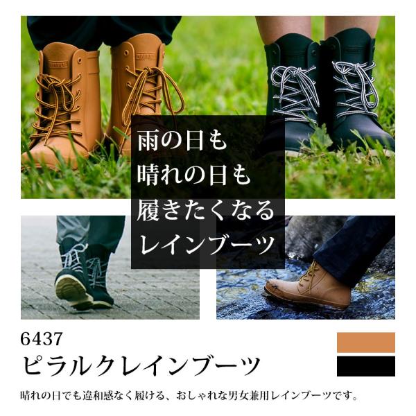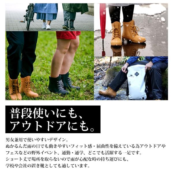 レインブーツ メンズ レディース ショート 長靴 おしゃれ 防水 レースアップ 通学 通勤 自転車 ワークブーツ アウトドア 6437 ピラルクレインブーツ