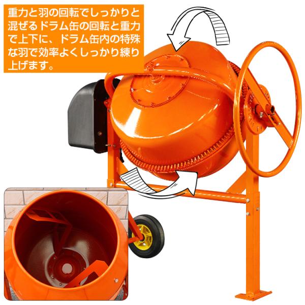 コンクリート ミキサー モルタルミキサー コンクリートミキサー 70L 電動コンクリートミキサー 小型 撹拌 100V 肥料ミキサー 現場用 生コンホッパー 練上量 35L