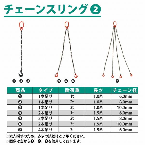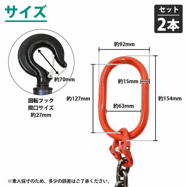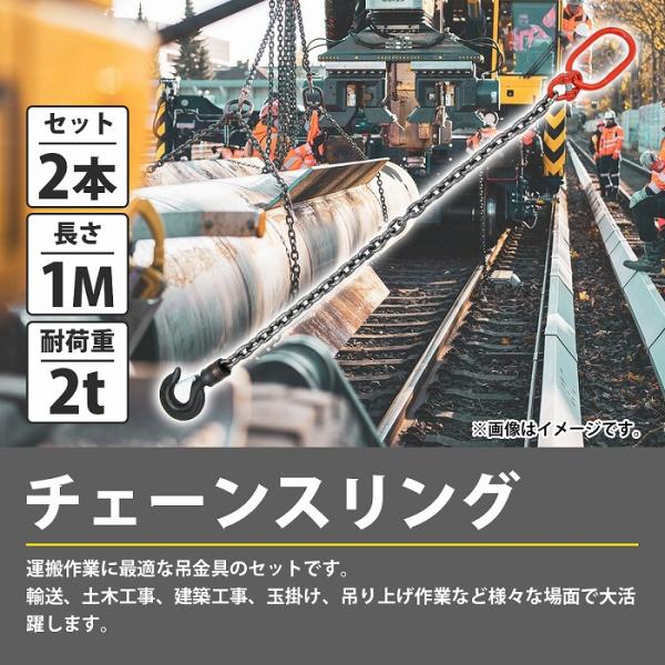 [ 2本セット 2t 1M ]1本吊り チェーンスリング 吊り スリング チェーン 回転フックタイプ リンツ付き 径 8mm 長さ 1m 耐荷重
