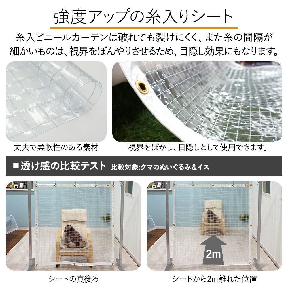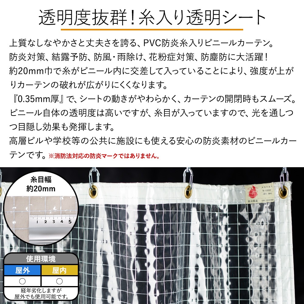 ビニールカーテン 透明 ビニールシート 屋外 工場 断熱 雨除け ベランダ 糸入り サイズオーダー 幅101〜200cm 丈151〜200cm FT06 0.35mm厚 JQ