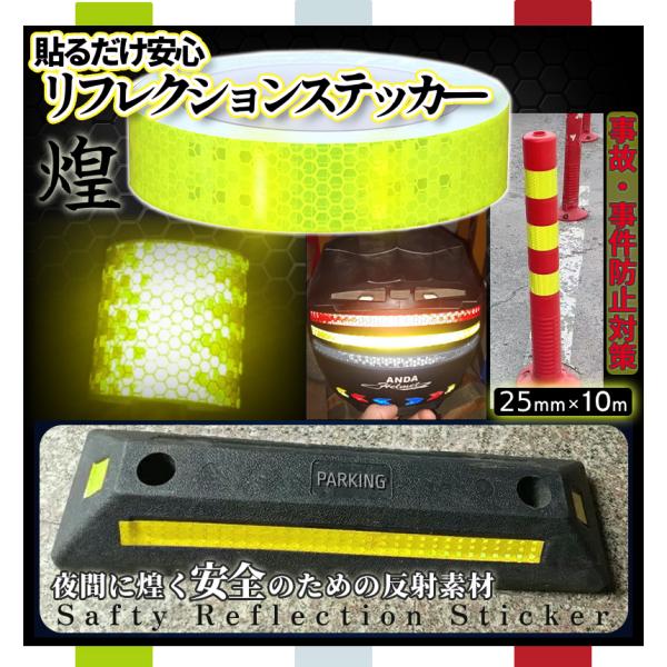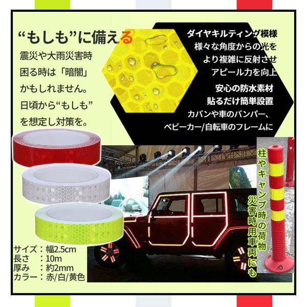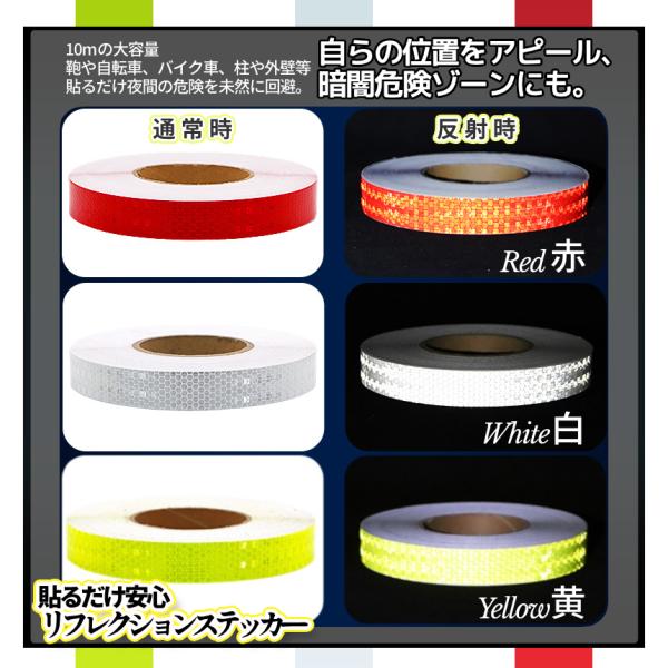 反射テープ 赤 黄色 白 リフレクターテープ 幅25mm×10m 防水 シール ステッカー 高反射 夜間 暗闇 防犯 事故防止 貼る 自転車 ヘルメット 車 バイク HANTAPE-25