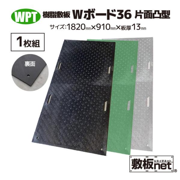 敷板 プラスチック 樹脂敷板 Wボード36 板厚13mm 滑り止め片面 [持ち手穴4つ] 黒 緑 灰 1枚 3尺×6尺 910mm x 1,820mm 21kg 敷鉄板 プラシキ 駐車場 仮設