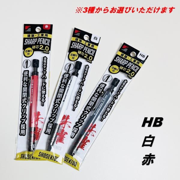 祥碩堂 SHOSEKIDO 建築用筆記具 シャープペンシル 2.0mm 朱雀 SUZAKU 500-HB黒 500-R赤 500-W白