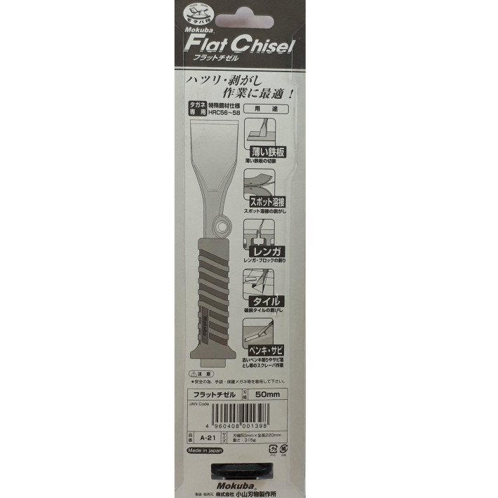モクバ フラットチゼル 50mm刃幅 A-21【チゼル スクレーパー mokuba 小山刃物製作所】