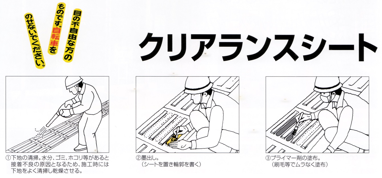 【クリアランスシート】35×285mm路面標示用3枚セットCS-204 視覚障害者が通行する際の道路標識