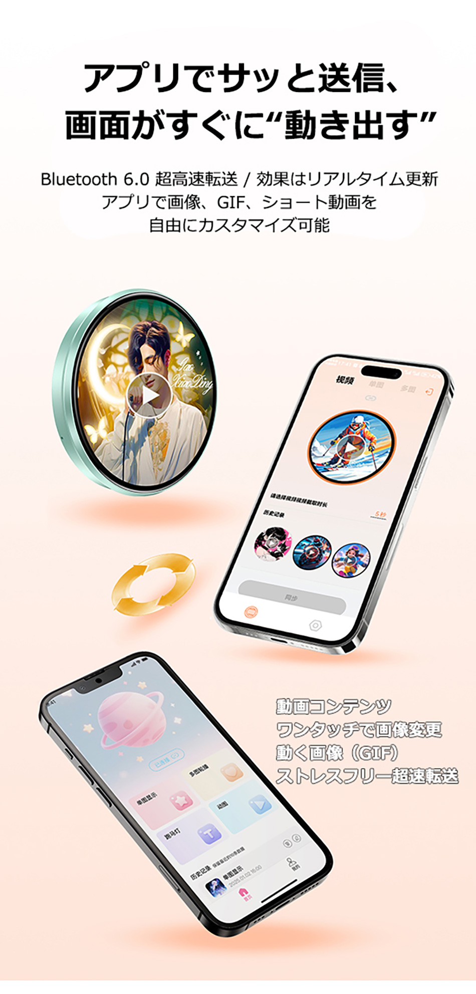 今だ15%OFF 電子名札 デジタルバッジ 1.95インチ タッチ操作 スマホ連動 Bluetooth6.0 電子バッジ 缶バッジ 画像スライドショー 動画再生 応援ライト 20時間駆動
