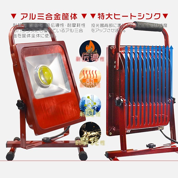 [期間限定] 50W LED投光器 9000lm 屋外 屋内 ポータブル 電源スイッチ付き LEDワークライト 作業灯 防水 360度回転 ledライト IP67 PSE 2年保証 1台 RTG-I