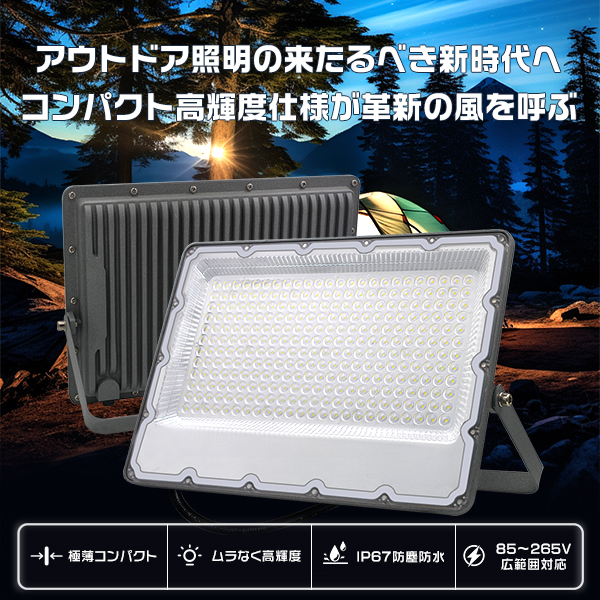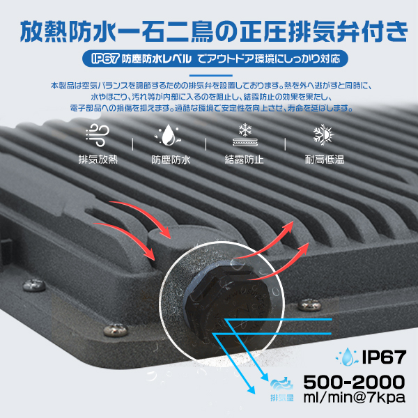 極薄LED投光器 作業灯 200W 正圧排気弁付き 85V-265V 36800lm 屋外 防水 160°広角照射 180°角度調整 IP67 高輝度 省エネ PSE PL保険 2年保証1台