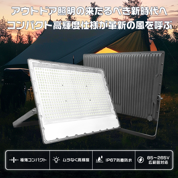 LED投光器 作業灯 400W 正圧排気弁付き 85V-265V 64500lm 高輝度チップ 屋外 防水 160°広角照射 180°角度調整 IP67 PSE PL保険 2年保証 1台