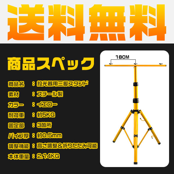 LED投光器用三脚スタンド MAX3灯乗る ヘッドライト/ワークライト用 高さ調節可 160CMまで アウトドア照明 スチール製パイプ 送料無 保証付 1個zj
