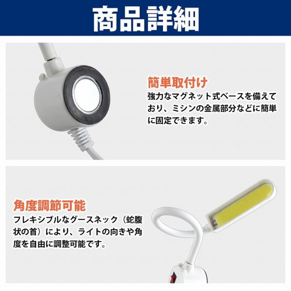 【送料380円】ミシンライト COB 6W LEDライト マグネット式 固定 手芸 裁縫 模型 プラモデル 作業 作業灯 角度自由調整 フレキシブル 20cm