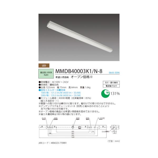 HotaluX 【2026年4月30日迄10%OFF】 トラフ形4000lm LED一体型ベース照明 ▼364-7809 MMDB40005K1/N-8 1台