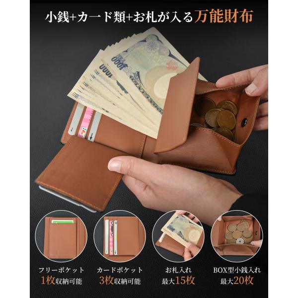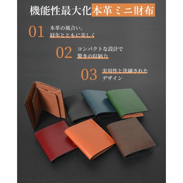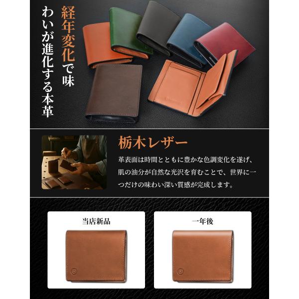 Modiko 財布 メンズ 二つ折り 本革 栃木レザー ミニ財布 コンパクト ボックス型小銭入れ カード収納 薄型 軽量 シンプル ビジネス カジュアル プレゼント