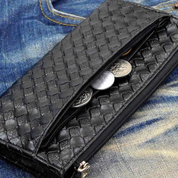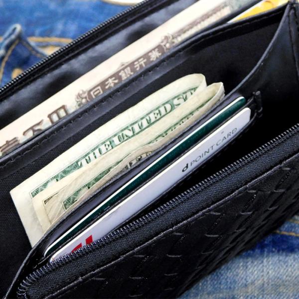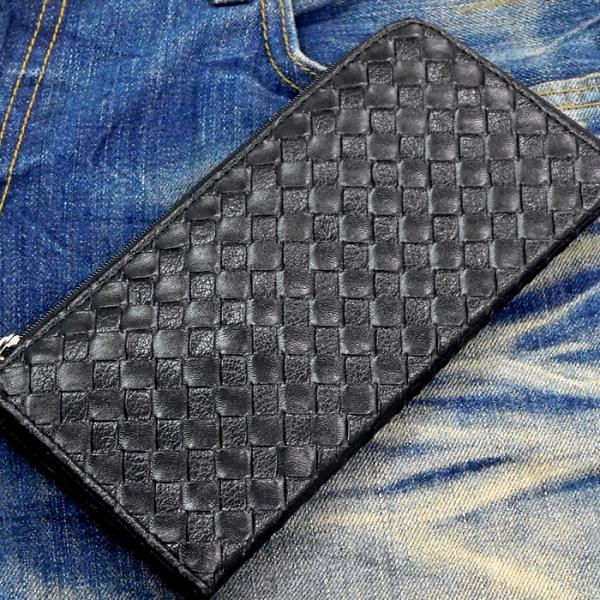 財布 イントレチャート 編み込み 型押し 長財布 黒 L字ファスナー メンズ レディース ロングウォレット 安い 人気 ファスナー ブラック