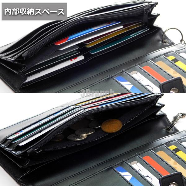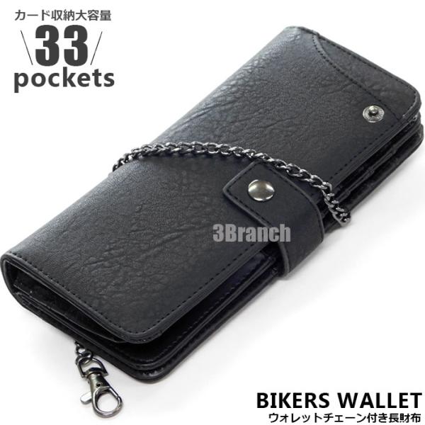 財布 メンズ 長財布 バイカーズウォレット フェイクレザー カッコイイ 大容量 おしゃれ 安い ウォレットチェーン付き ブラック 黒