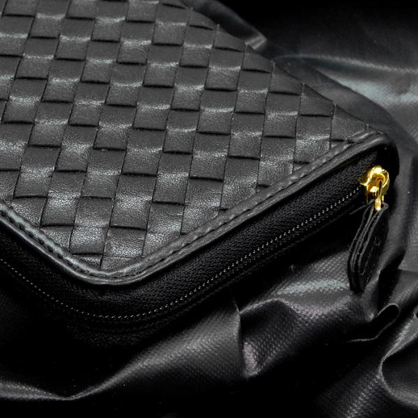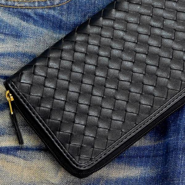 長財布 ラウンドファスナー 財布 メンズ 編み込み イントレチャート ロングウォレット 安い 人気 黒 ブラック 男性 シンプル ファスナー