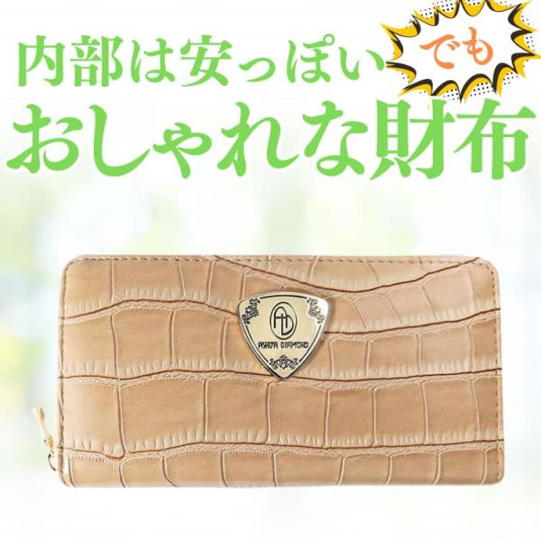 4月末までセール延長!財布 芦屋ダイヤモンド 金属プレート刻印 クロコダイル柄ラウンド ファスナー 長財布 合成皮革 軽量 2万円→40%OFF ネコポス CP10