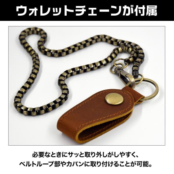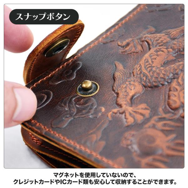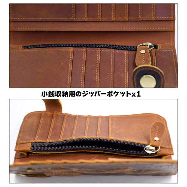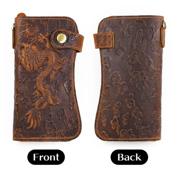期間限定セール 龍模様 ロングウォレット チェーン付き バイカー 財布 エンボス ドラゴン柄 竜 レザー マグネット不使用 ブラウン 和柄 浮き彫り