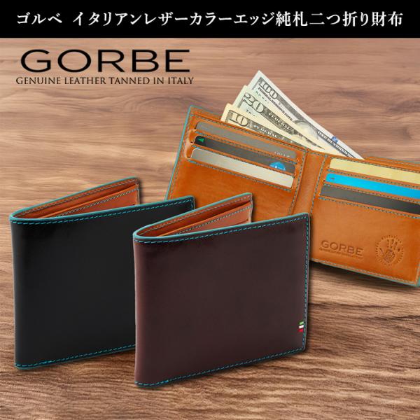 財布 メンズ 二つ折り 本革 札入れ 名入れ シンプル ゴルベ GORBE イタリアンレザー カラーエッジ 純札二つ折り財布