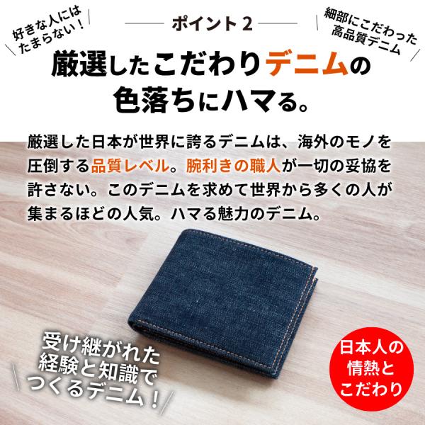 二つ折り財布 日本が誇るデニム 二つ折り 2つ折り 財布 コンパクト財布 メンズ レディース カード収納 薄い 小銭入れ ボックス型 メンズ財布 ミニ財布