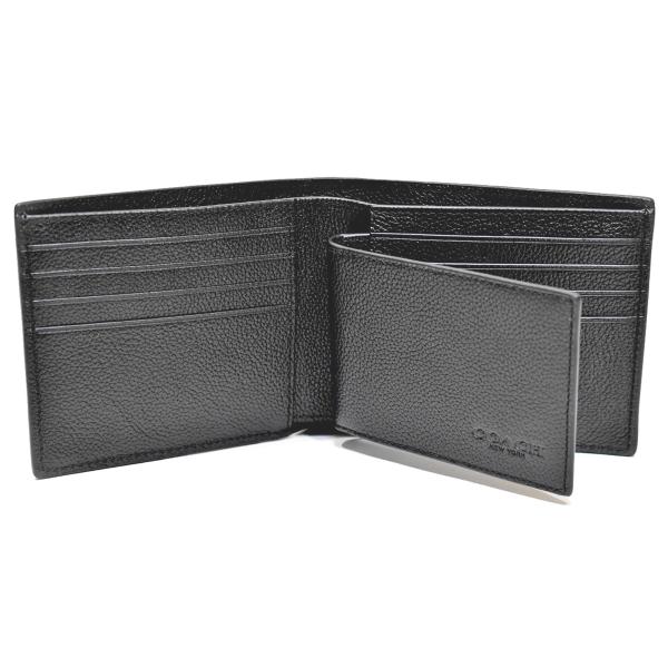 コーチ 財布 メンズ 折り財布 二つ折り 二つ折り財布 折りたたみ財布 ミニ財布 アウトレット COACH CR911 ID パスケース レザー ブラック 黒