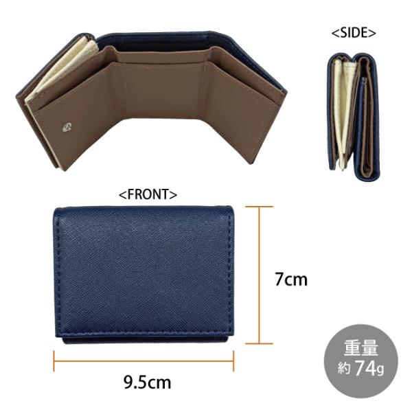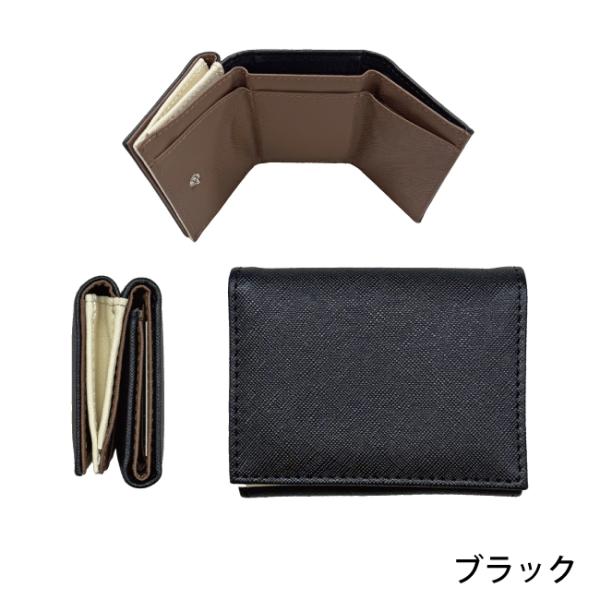 【クリックポストで送料無料】財布 三つ折り ミニ ウォレット メンズ 紳士 男性 コンパクト キャッシュレス シンプル羊革風 合皮 プレゼント ビジネス W-1111
