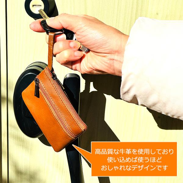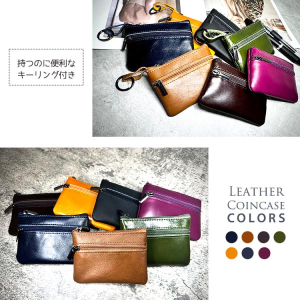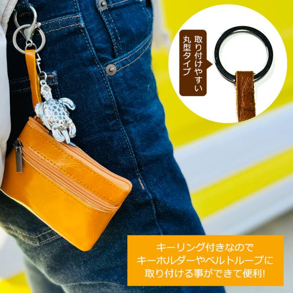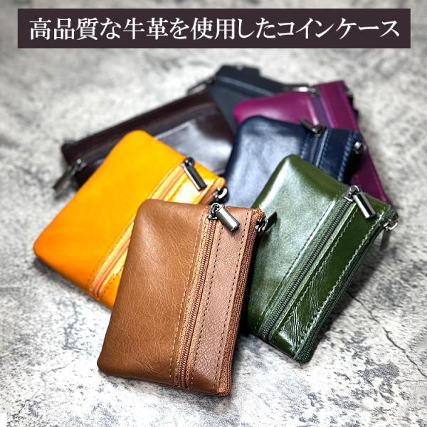 本革 コインケース 小銭入れ メンズ レディース ミニ財布 革 牛革 キーリング付き コンパクト ファスナー 小さい 薄い ストラップ
