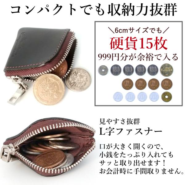 小さい 小銭入れ 極小 コインケース L字型 YKKファスナー ラウンドファスナー 薄型 本革 財布 コンパクト