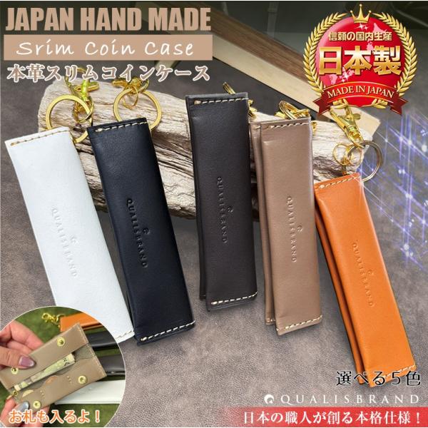 本革スリムコインケース | ブラック ホワイト ブラックグレー グレージュ オレンジ ハンドメイド コインケース 本革 小銭入れ 小銭ケース キーケース 本革ケース