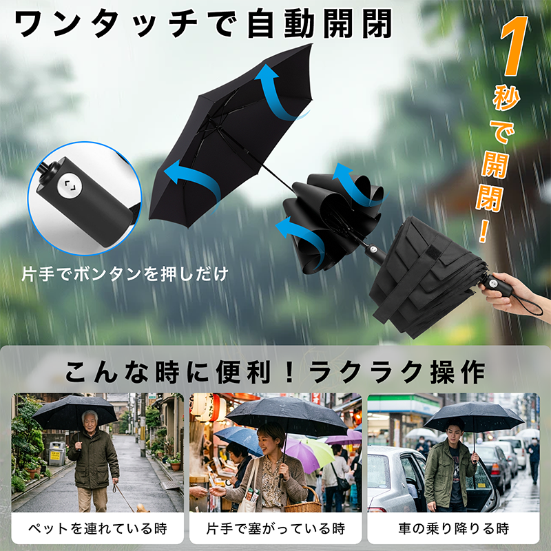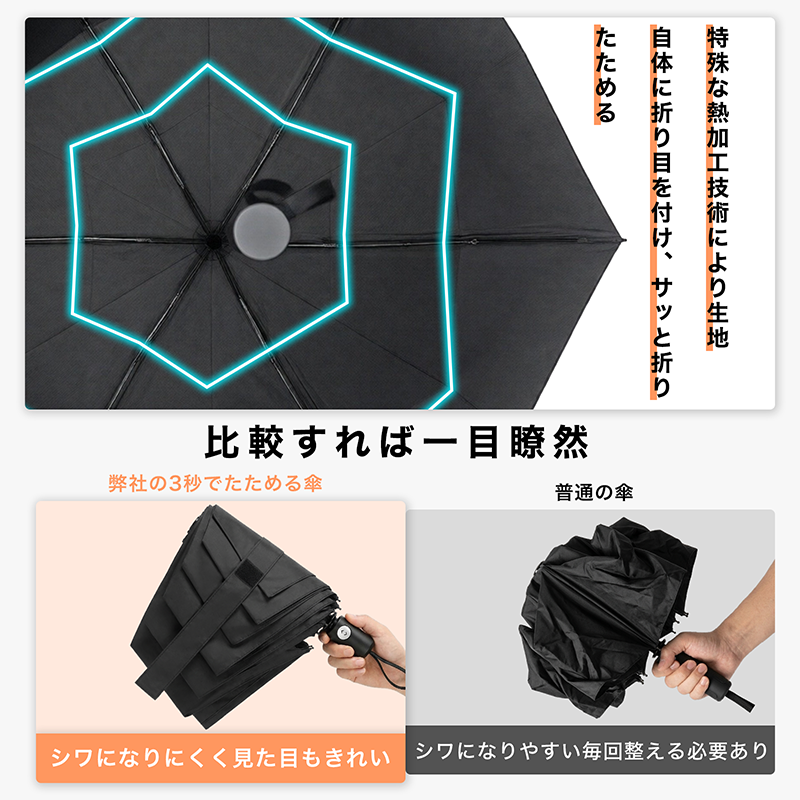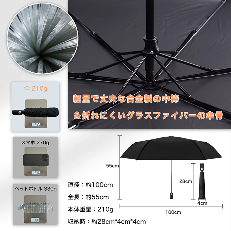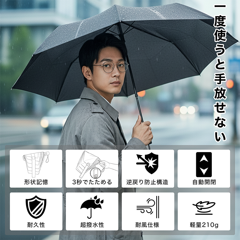 折りたたみ傘 【形状記憶×超軽量210g】 3秒でたためる傘 折畳み傘 逆戻り防止構造 ワンタッチ自動開閉 レディース メンズ 撥水 耐風 コンパクト 折り畳み傘