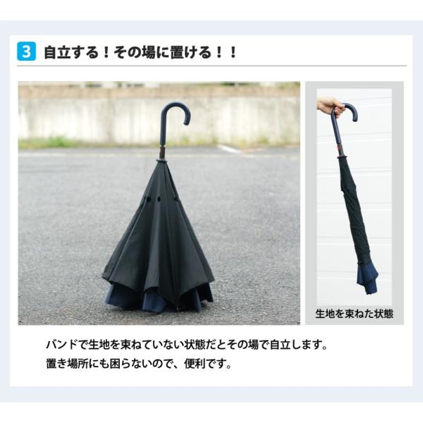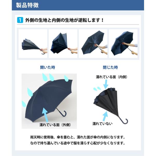 傘 メンズ 逆さ傘 ワンタッチ さかさま傘 開閉逆転傘 65cm×8本骨 大きいサイズ 丈夫 撥水 エチケット リーベン 0126