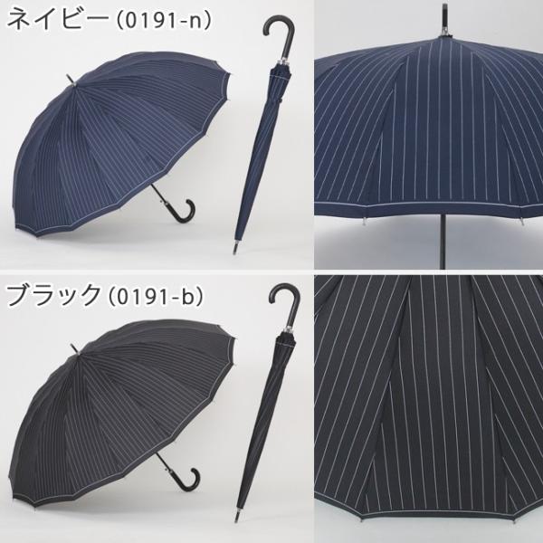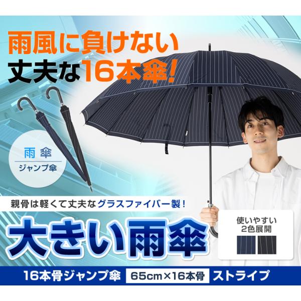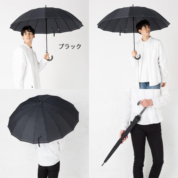 傘 メンズ 65cm 16本骨 大きいサイズ おしゃれ ストライプ 雨傘 丈夫 ネイビー ブラック リーベン 0191
