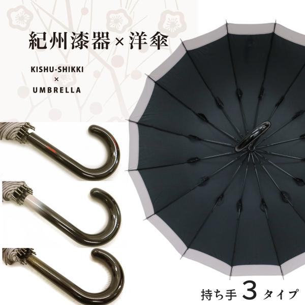 傘 御祝・贈答 ギフト対応 紀州漆器アンブレラ 16本骨和傘 持ち手の一つ一つを職人が手造り 丈夫なグラスファイバー骨【プレミア和歌山認定】ギフト箱 メンズ