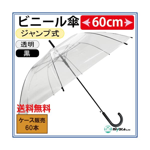 ビニール傘 透明 60cmジャンプ式 黒パーツ黒骨 業務用 60本