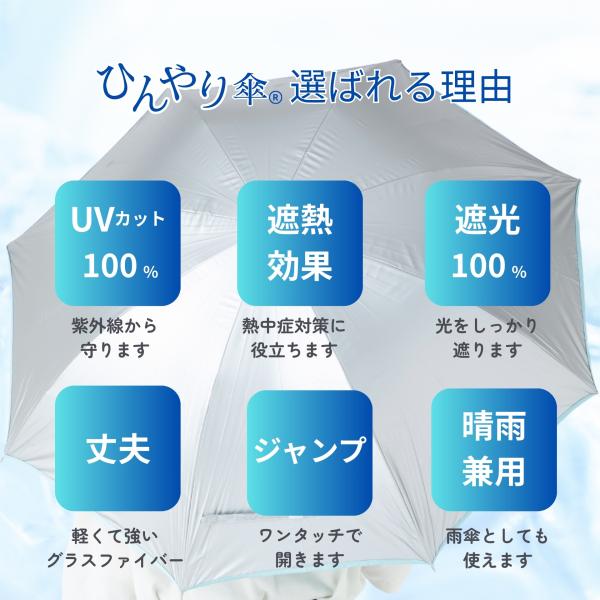 日傘 メンズ レディース 晴雨兼用 長傘 ジャンプ傘 大きい 60cm×8本骨 UVカット 遮光 遮熱 シルバー ひんやり傘 リーベン 0104