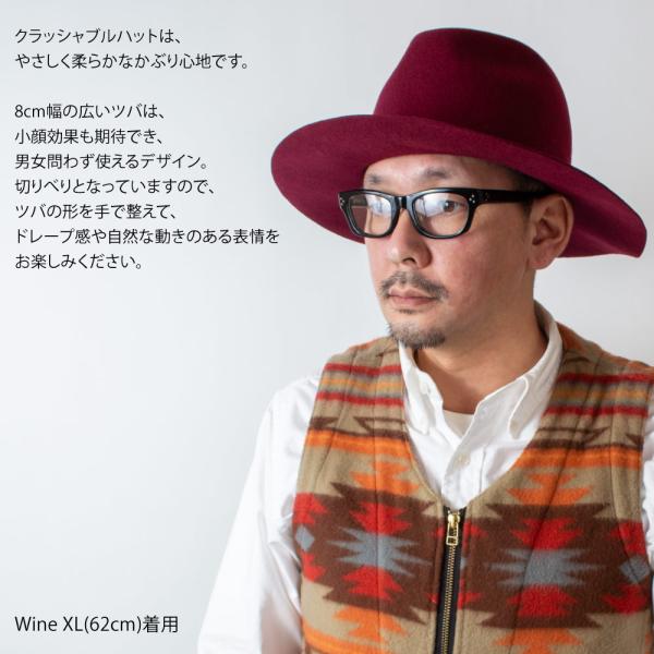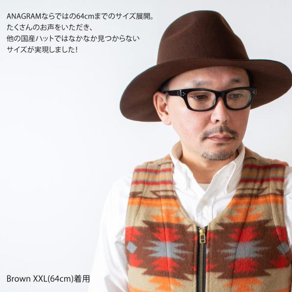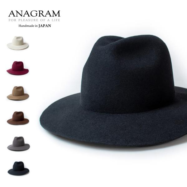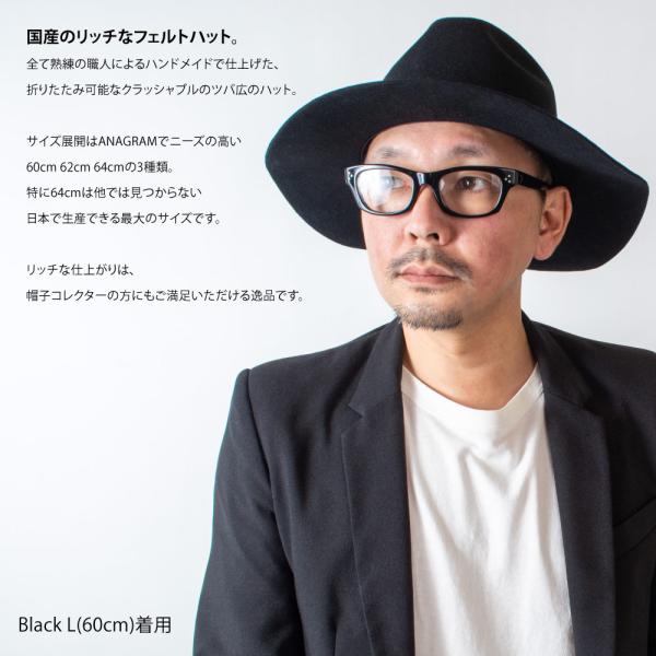 アナグラム ANAGRAM 日本製 つば広 中折れフェルトハット 秋冬 春夏 折りたたみ クラッシャブル 大きいサイズの帽子 60cm 62cm 64cm メンズ レディース