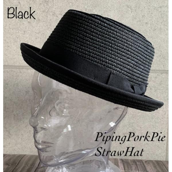 帽子 パイピング ポークパイ レイハット ストロー カンカン帽 ハット メンズ レディース 紫外線対策 サイズ調整 春夏 【店内商品2点以上ご購入で送料無料】