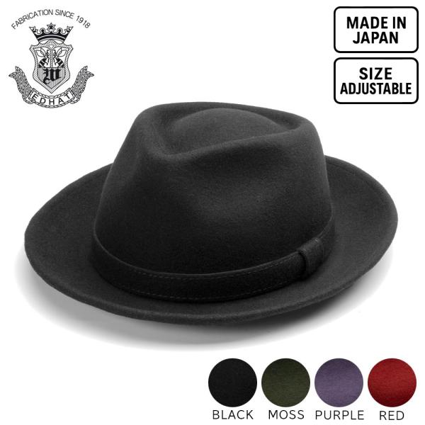 【日本製 EDHAT】中折れハット ウールフェルト 秋冬 メンズ ミドルブリム サイズ調節 大きいサイズ 小さいサイズ ブラック カーキ パープル レッド M-16266445